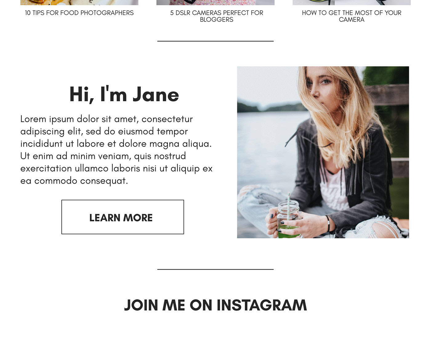 Photography Branding | Brand Board + Blog UI Mockup