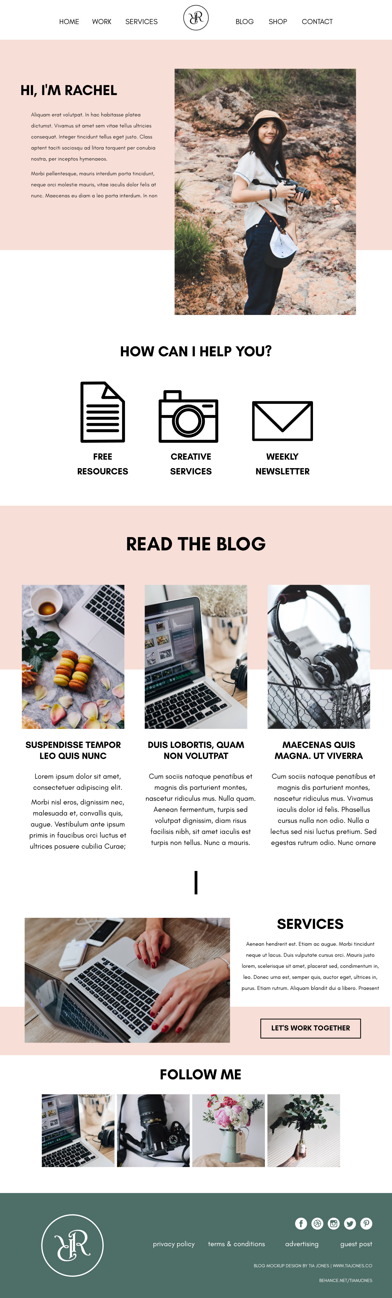 Branding project for a mock feminine photography brand. I created a logo design, brand board, color palette, and blog ui mockup for this brand.